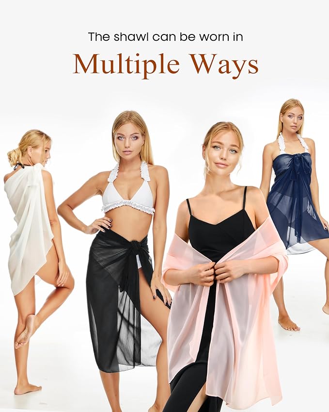 - Quality Soft Chiffon Fabric: Made from premium chiffon, this shawl make silk feel, smooth and lightweight, offering both soft comfort and elegance for cool evenings or formal events