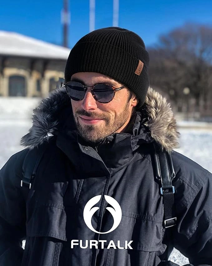 FURTALK Winter Hats for Men Women Fleece Lined Beanie Warm Knitted Outdoor Skull Cap 2 pcs