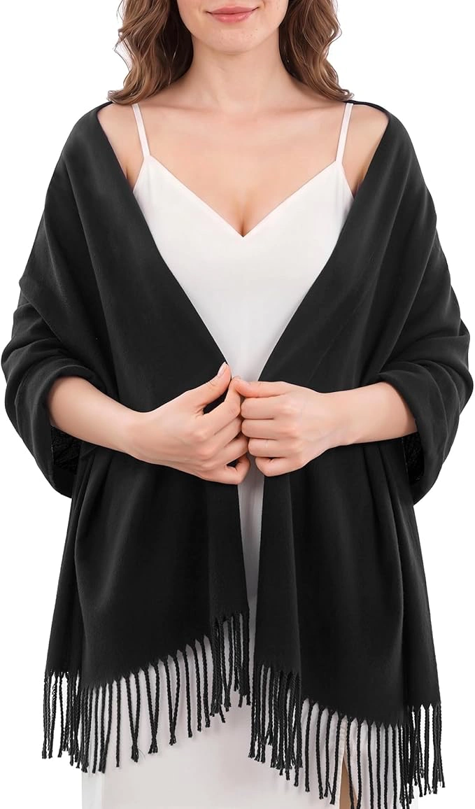 - Beyond Formal Events,this Shawl is a Staple for Daily Life. Wear it loosely with jeans and a blazer for a relaxed vibe,pair it with a long sweater and leggings for cozy style,or keep it folded in your bag as a lap blanket for unexpected cool moments on flights.The 75″ length offers endless styling possibilities