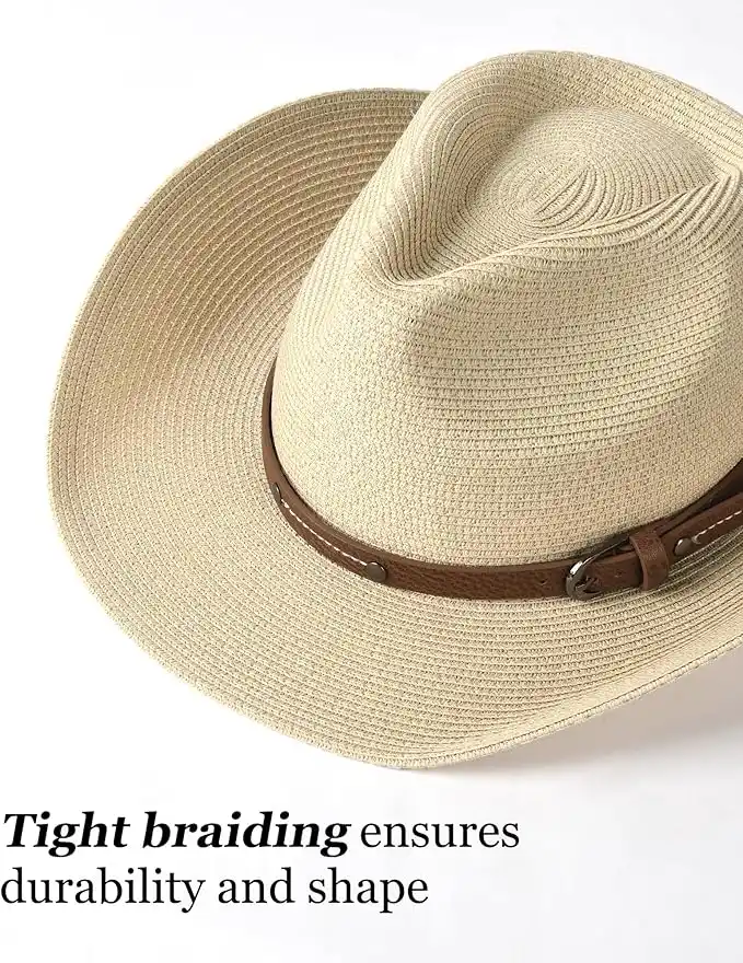 - Great material:This cowboy sun hat is made of super lightweight and breathable 90% Paper ,10% Polyester,doesn’t make your head feel too hot and stay fresh all the time.Tight braiding ensures durability and shape,could wear it for a long time