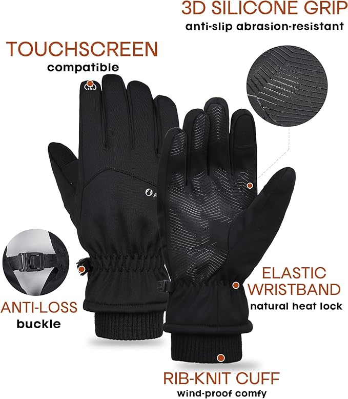 FURTALK Winter Gloves for Men Women Waterproof Windproof Cold Weather Touchscreen Warm Ski Snow Fleece Lined