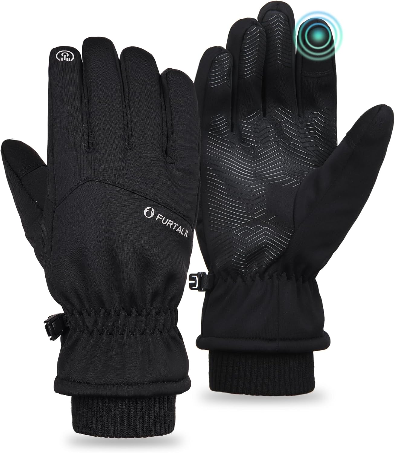 FURTALK Winter Gloves for Men Women Polyester Zipper Adjustable Strap Waterproof Windproof Gloves